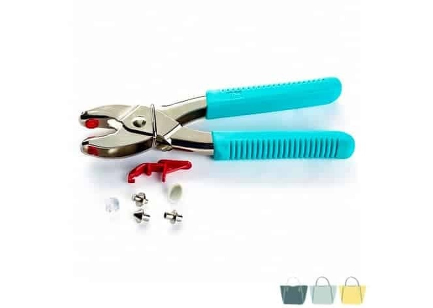 Veelzijdige tang voor naaivrije Prym-producten zoals drukknopen, oogjes, jeansknopen, ColorSnaps en klinknagels/rivetten.