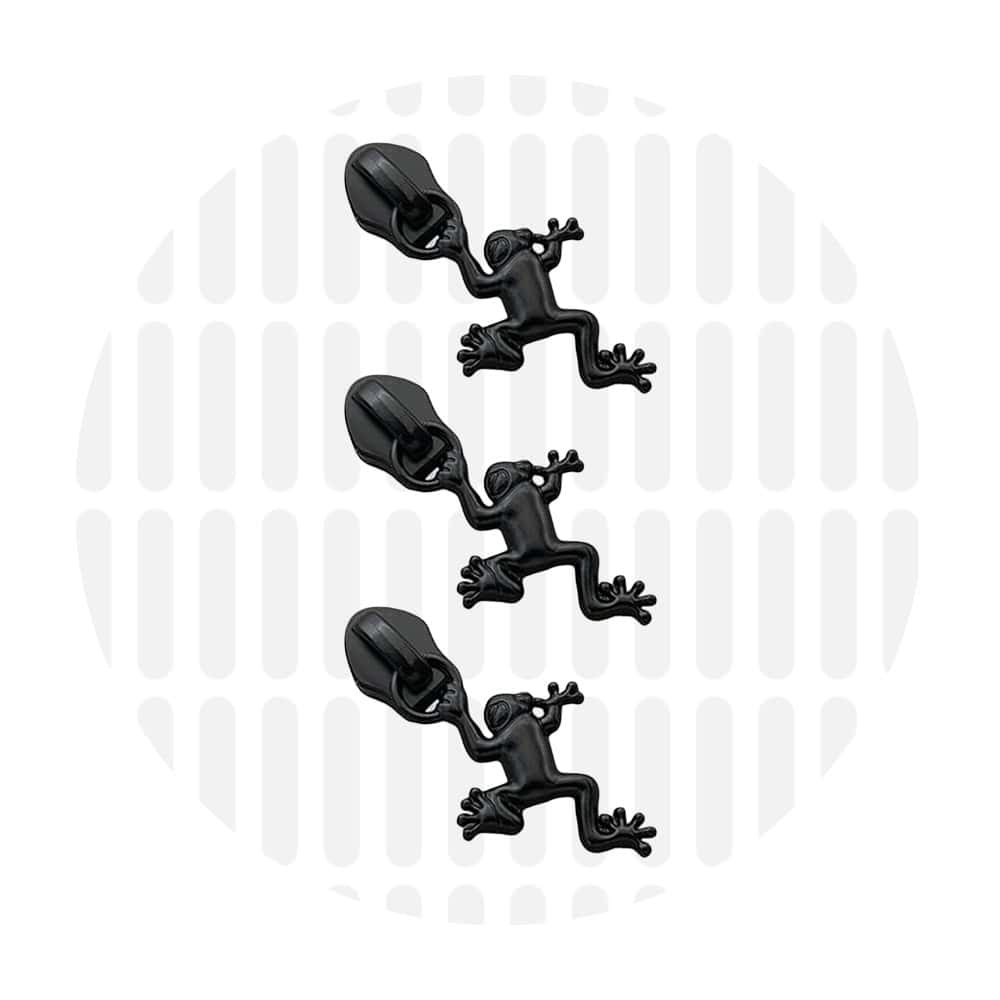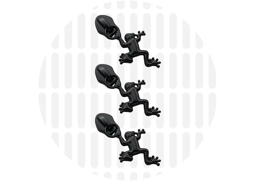 Set van 3 ‘Frog’ zipper pulls voor spiraalrits #S5 (nylon). 3 schuivers per verpakking.